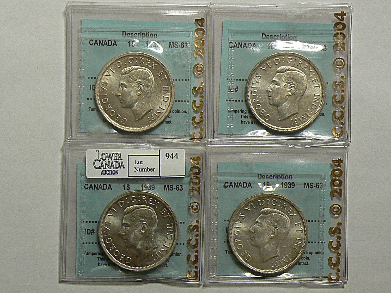 Dollar 1939, graded CCCS MS-63. Lot of 4 coins.