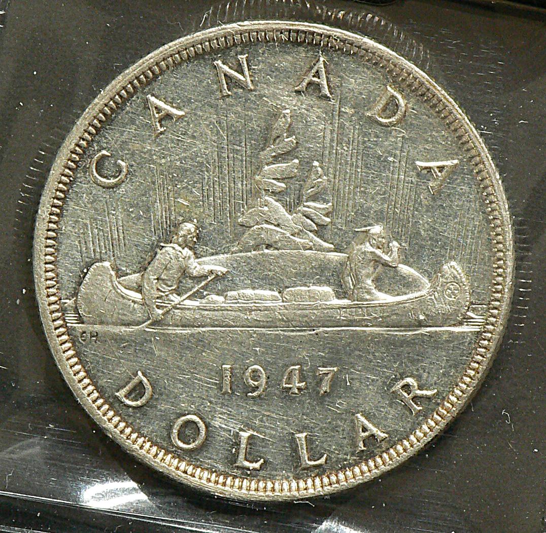 Dollar 1947, graded ICCS AU-55, Blunt 7, Harshly cleaned.