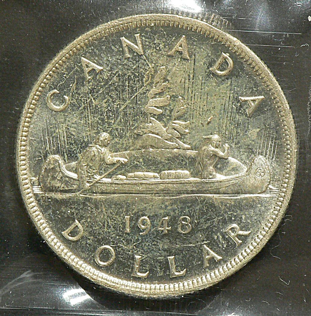 Dollar 1948, graded ICCS MS-63. A touch of hue of the obverse on this untoned coin.