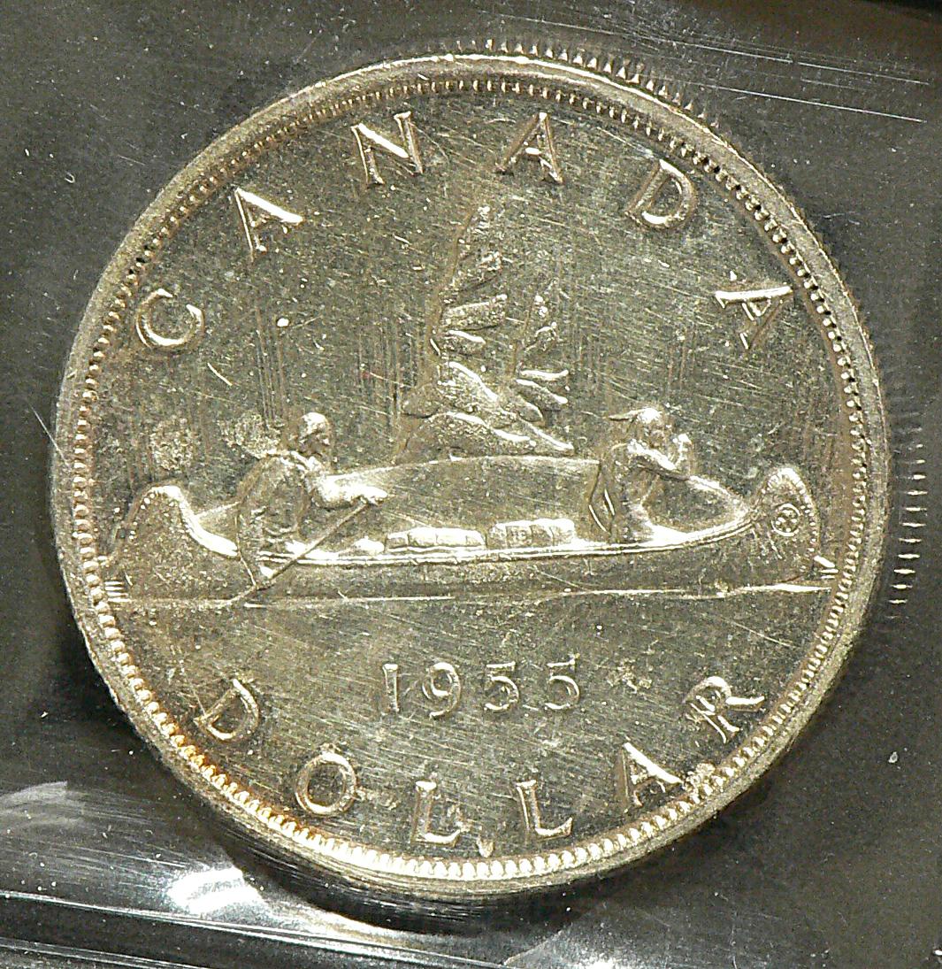 Dollar 1955, graded ICCS MS-60 Arnprior, No Die Break.