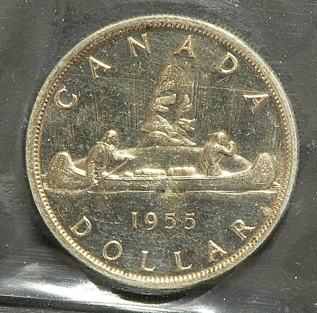 Dollar 1955, graded ICCS MS-62 Arnprior, No Die Break.