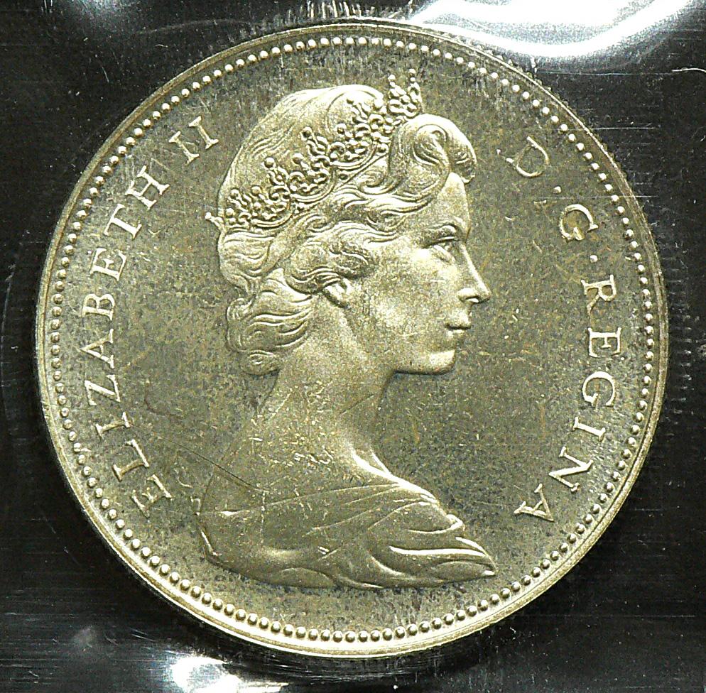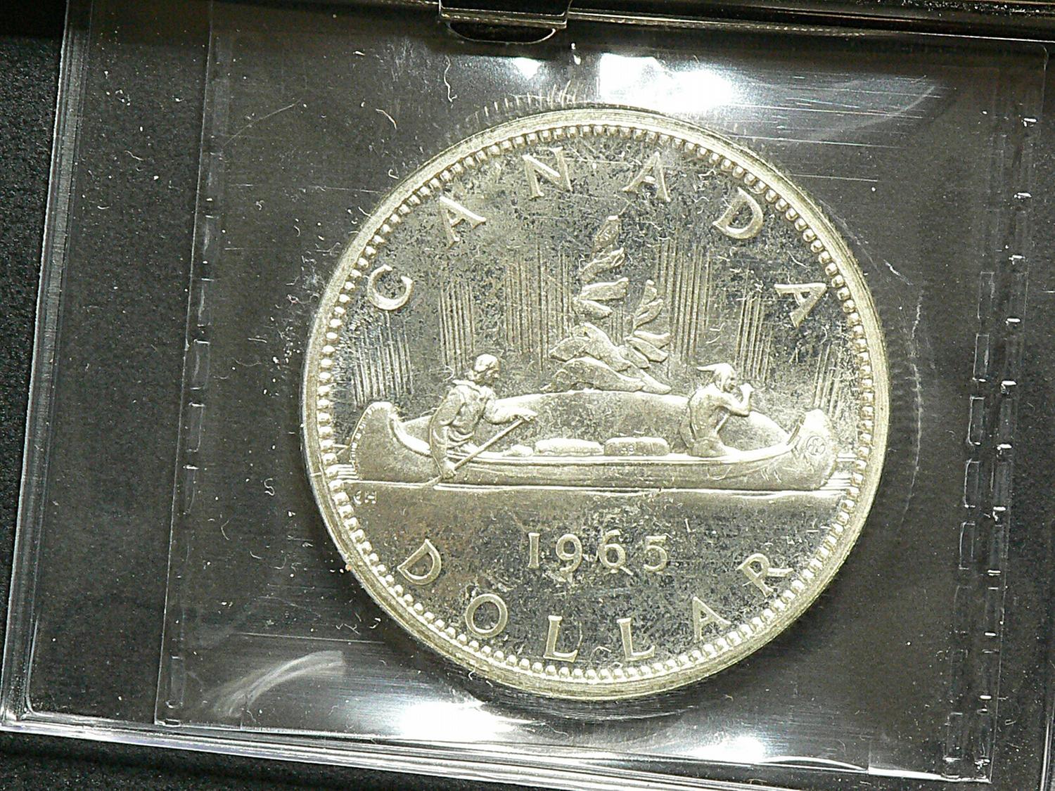 Dollar 1965, graded ICCS PL-65, Large Beads, Blunt 5, Cameo.
