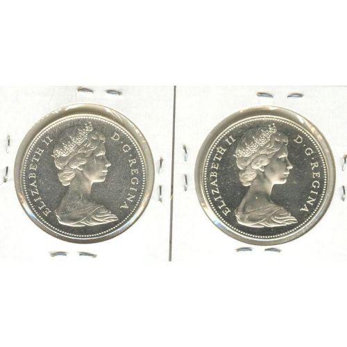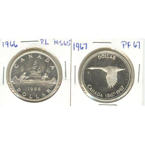 Silver dollar 1966 in PL-65 Cameo and 1967 in SP-65 Cameo. Lot of 2 coins