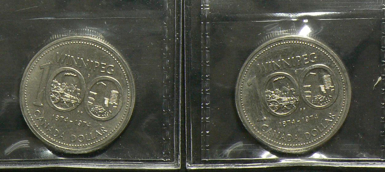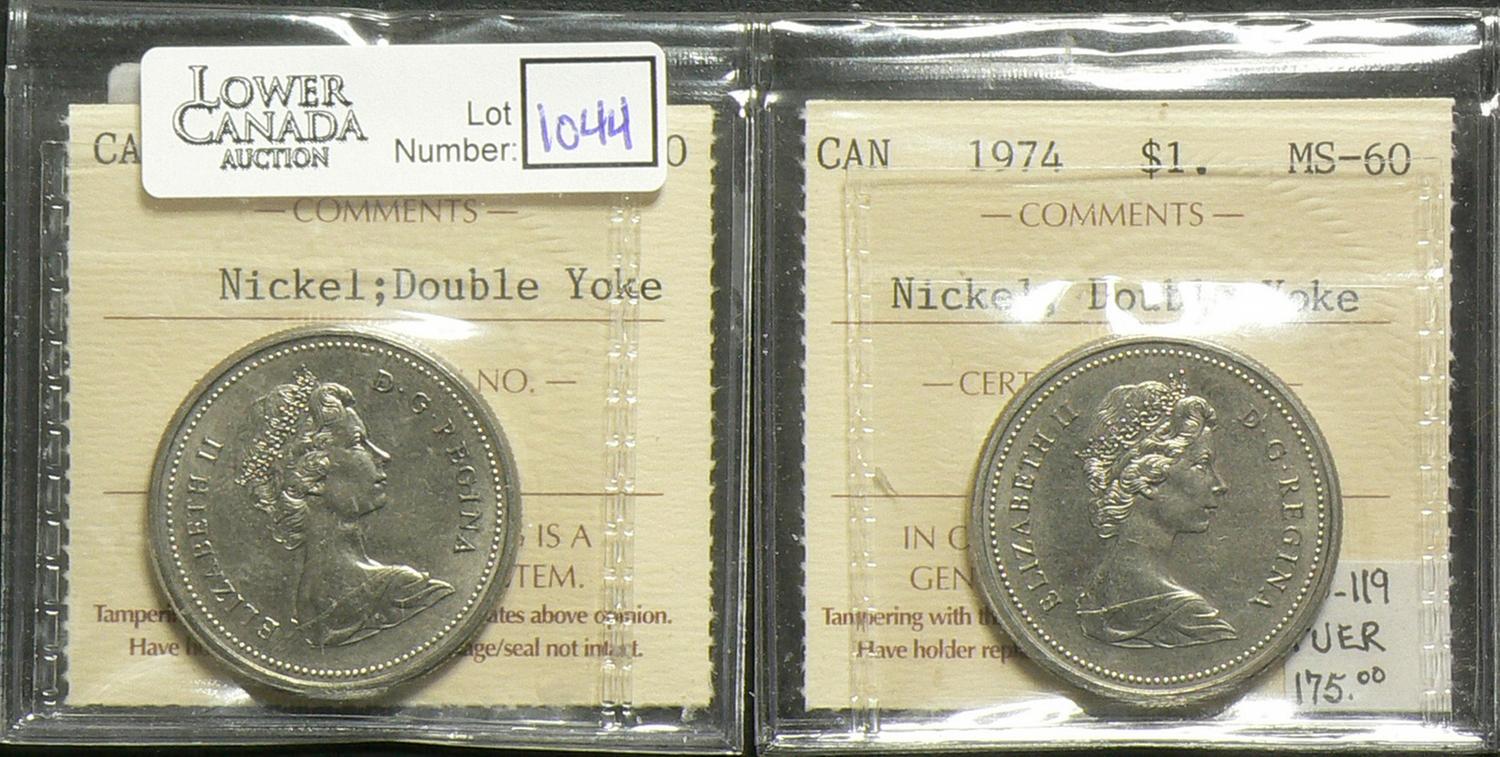 Dollar 1974, graded ICCS MS-60 Double Yoke. Lot of 2 coins