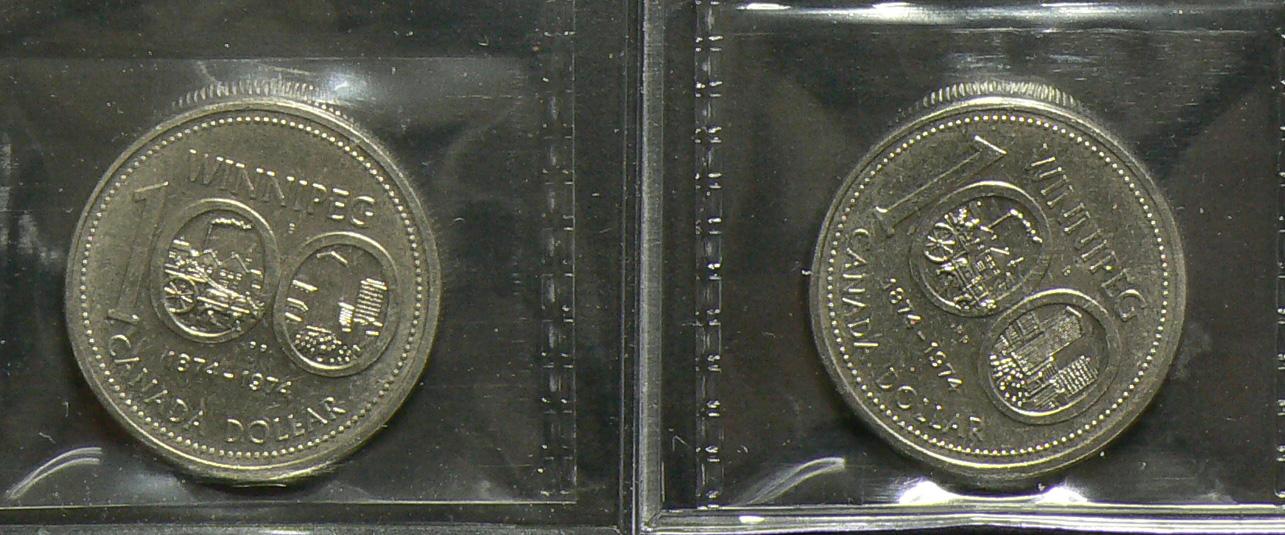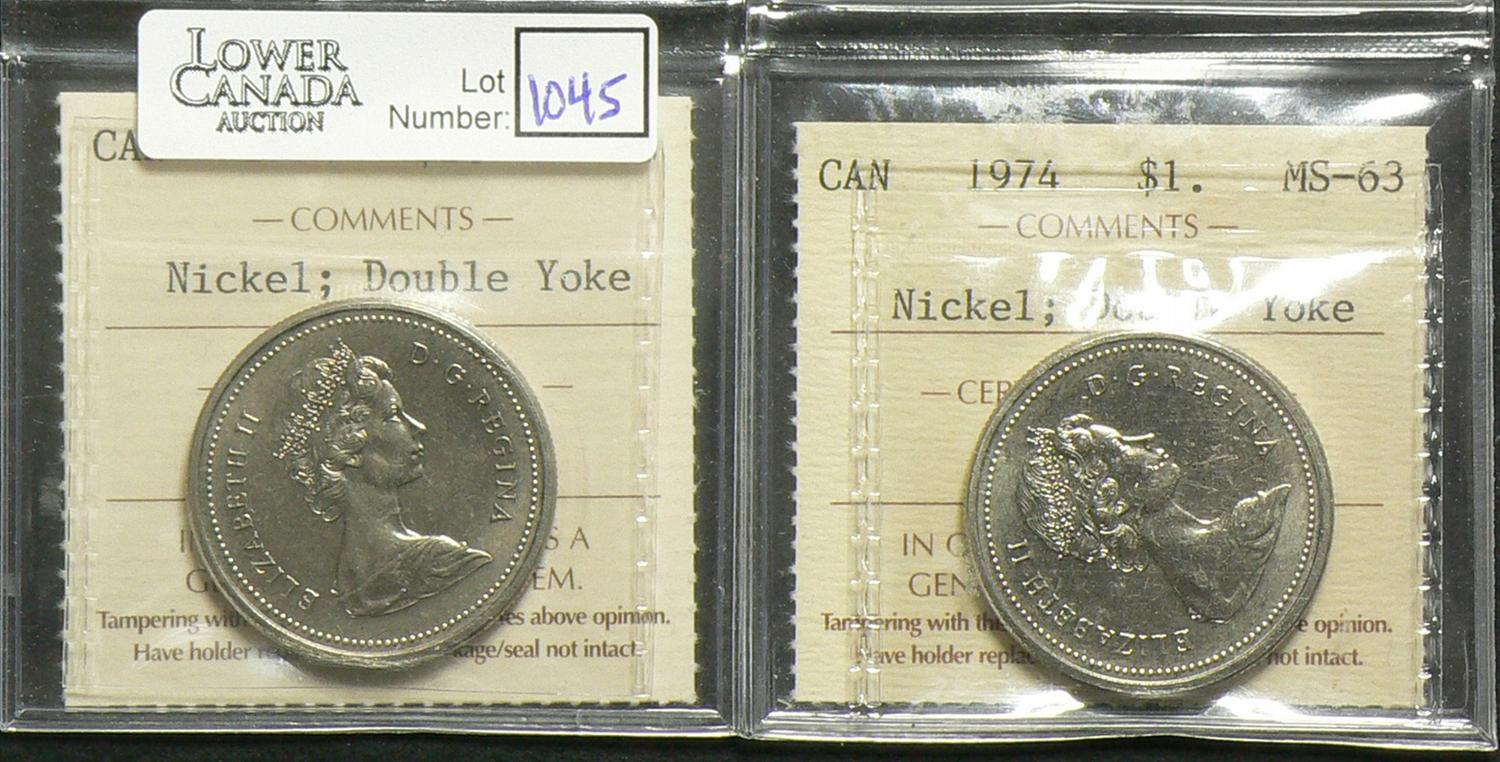 Dollar 1974, graded ICCS MS-63 Double Yoke. Lot of 2 coins
