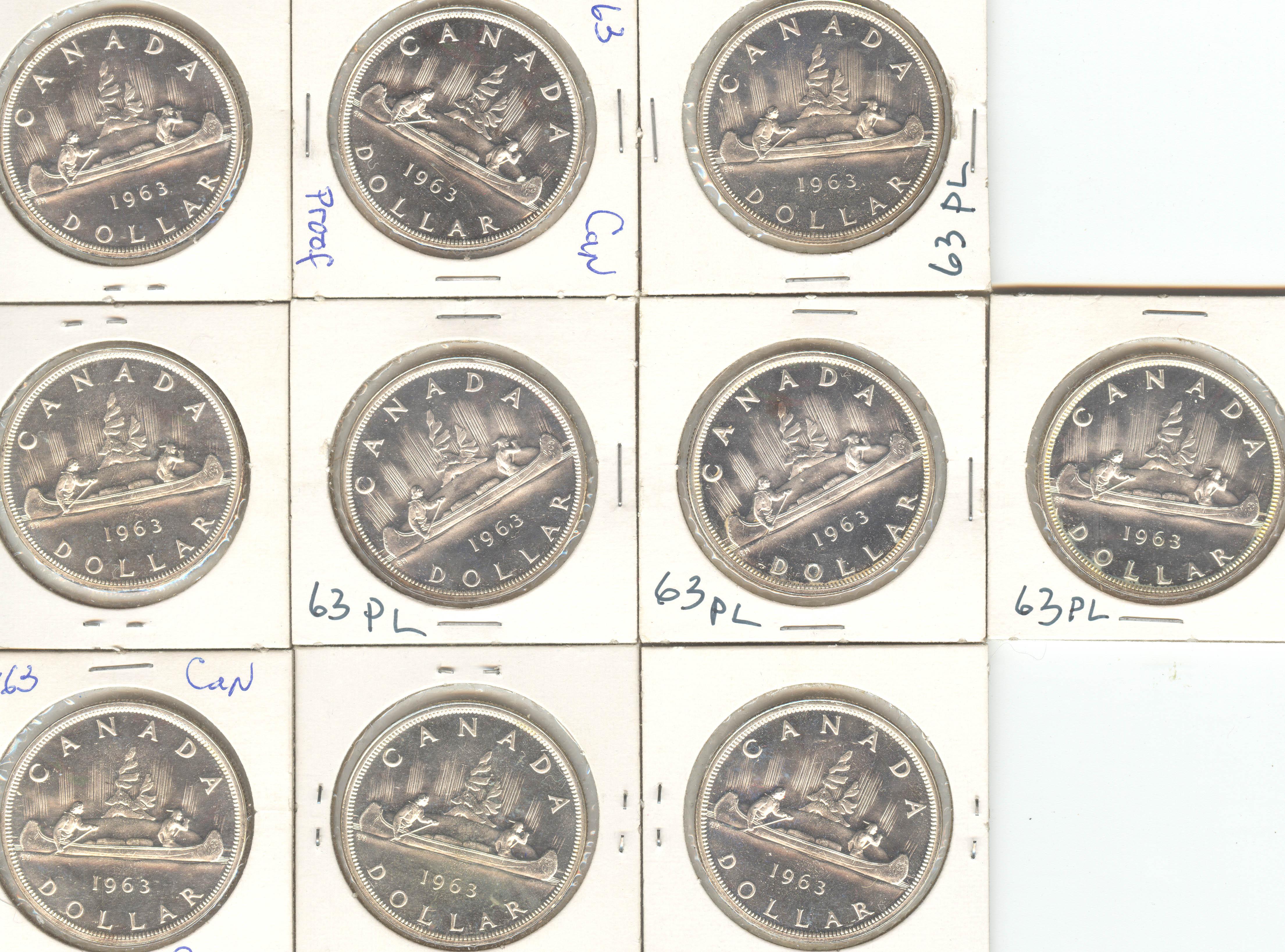Dollar 1963 Proof Like in 2x2, lot of 10 silver dollar .