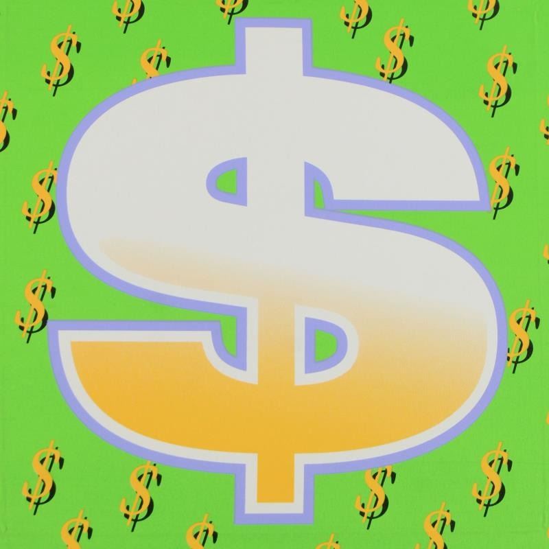 "Dollar Sign" is a limited edition hand pulled silkscreen on canvas by Andy Warhol protege Steve Kaufman (1960-2010). This piece is numbered 47/50 and hand signed inverso. Includes Certificate of authenticity. As is common with Kaufman's works, this piece