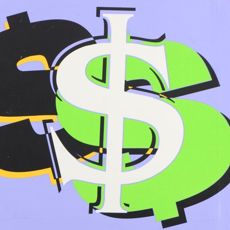 "Dollar Sign" is a limited edition hand pulled silkscreen on canvas by Andy Warhol protege Steve Kaufman (1960-2010). This piece is numbered 38/50 and hand signed inverso. Includes Certificate of authenticity. As is common with Kaufman's works, this piece may have perceived minor flaws, but is in overall good condition. Measures approx. 24" x 24" (image). Please note: there is minor smudging on the bottom right corner that may be concealed when stretched and framed.