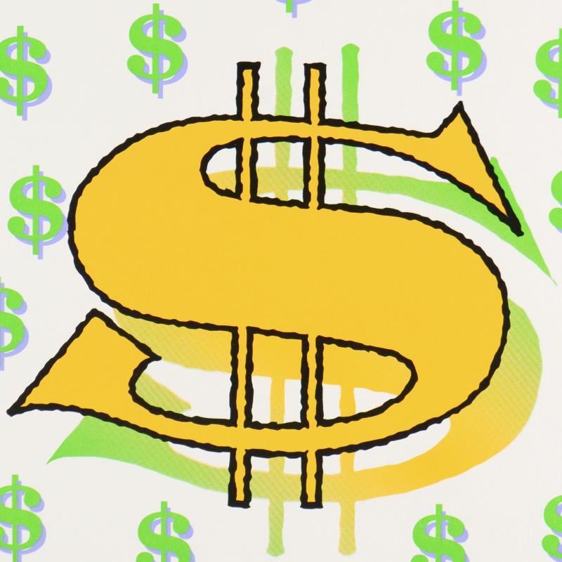 "Dollar Sign State 3" is a limited edition silkscreen on canvas by Andy Warhol protege Steve Kaufman (1960-2010). This piece is numbered 15/50 and hand signed inverso. Includes Certificate of authenticity. As is common with Kaufman's works, this piece may have perceived minor flaws, but is in overall good condition. Measures approx. 20" x 20" (image).
