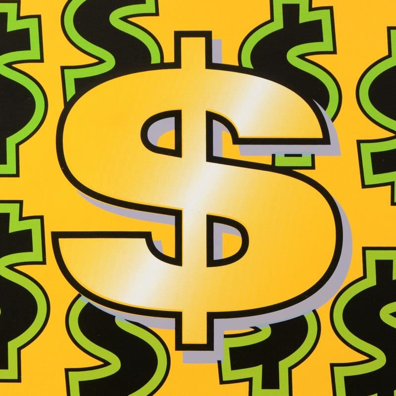 "Dollar Sign" is a limited edition hand pulled silkscreen on canvas by Andy Warhol protege Steve Kaufman (1960-2010). This piece is numbered 33/50 and hand signed inverso. Includes Certificate of Authenticity. Measures approx. 24" x 24" (image).