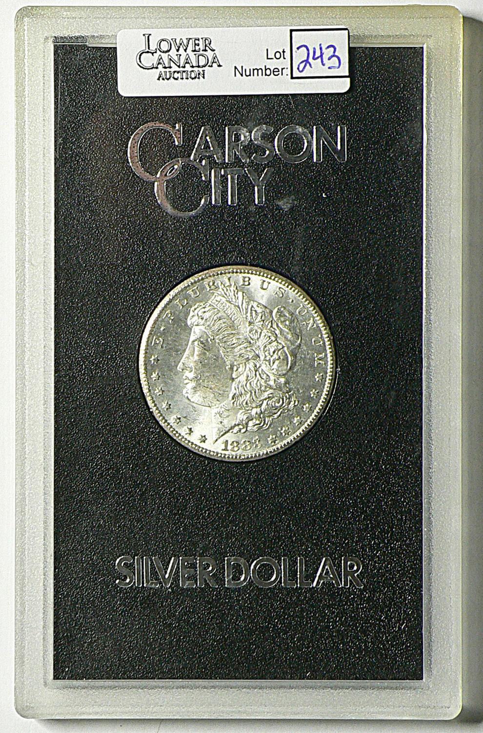 Dollar USA 1883CC, in casing, grade MS-63, No Certificate.