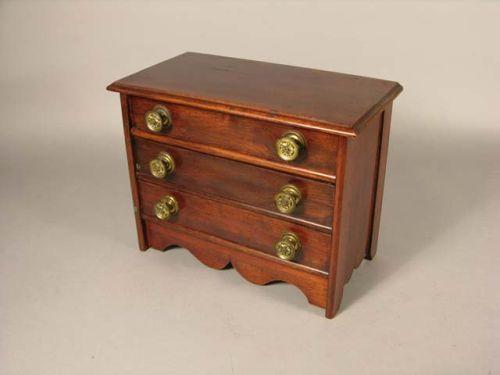 Dolls' chest-of-drawers, walnut, original brass pulls. 11.5" x 9.5" x 6" ex. cond.