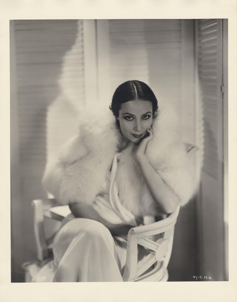(RKO, 1932) Silver bromide matte 11 x 14 in. file print of Dolores Del Rio from Bird of Paradise by Ernest A. Bachrach. From the personal collection of the photographer; with NY-A-19A in India ink on the negative. Very fine; with ¼ in. ink line at the upper right border and light rippling at the upper and lower edges.