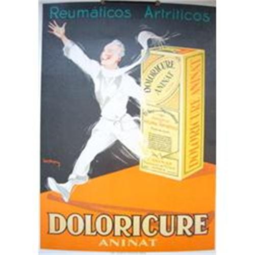 The Doloricure Aninat man in this vintage poster happily goes forth, in the prime of health, thanks to the magic cure of Doloricure Aninat..