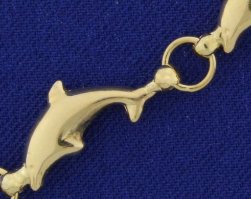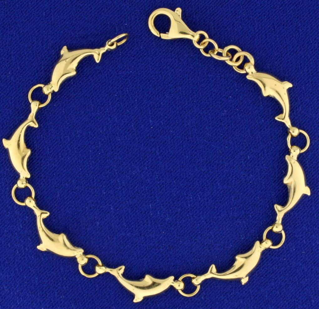 In 14k yellow gold. 7 1/2" long and 7mm wide, with lobster clasp. 8.0g.