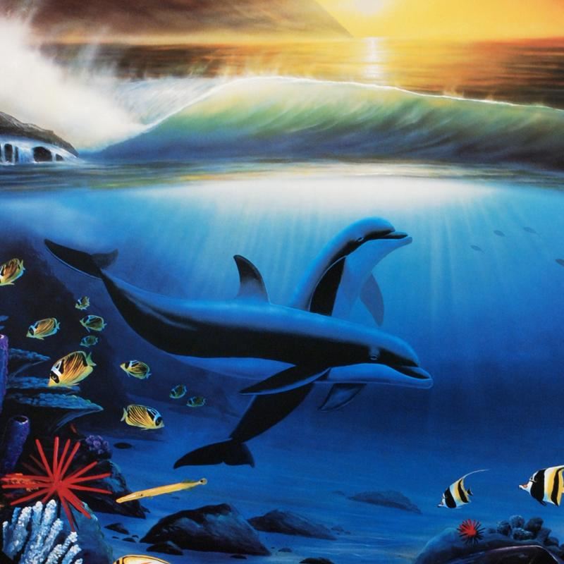 "Dolphin Days" is a poster by Wyland. Measures approx. 24" x 28" (image).