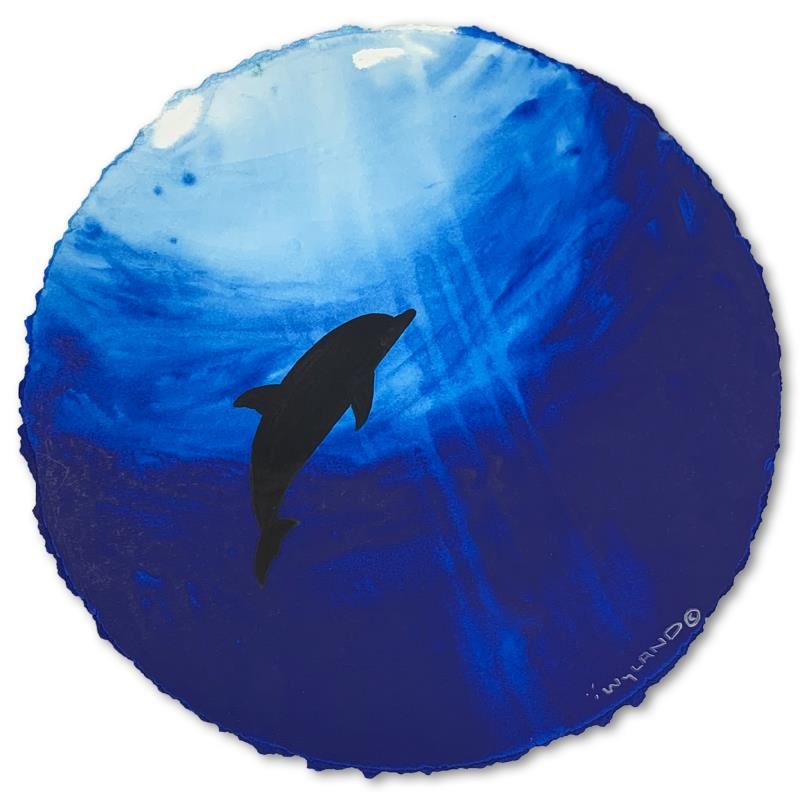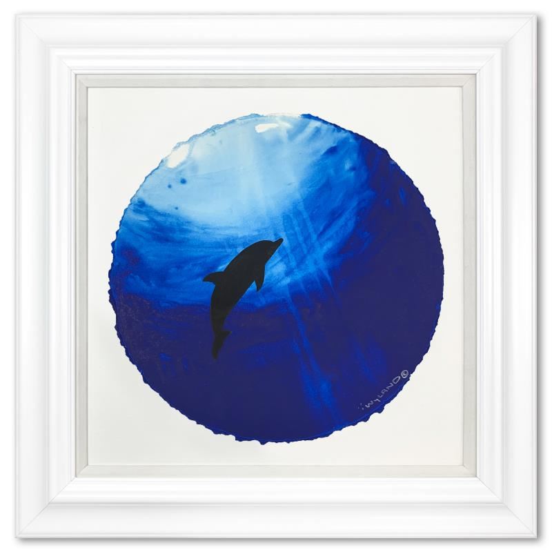 "Dolphin Floatin" is an original painting, watercolor on deckle edge paper by Wyland. Hand signed by the artist, the piece comes custom framed and with a letter of authenticity. Measures approximately 30" x 30" (framed), 19.5" x 19.5" (image).