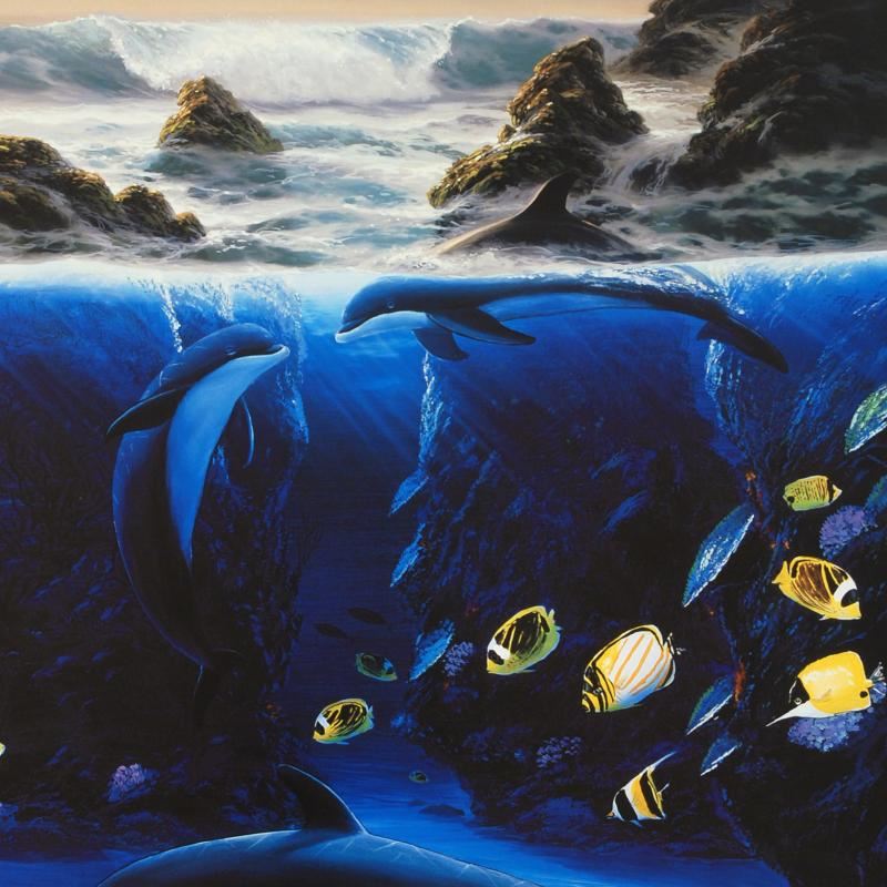 "Dolphin Harmony" is a poster by Wyland. Measures approx. 17" x 26.5" (image).