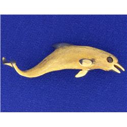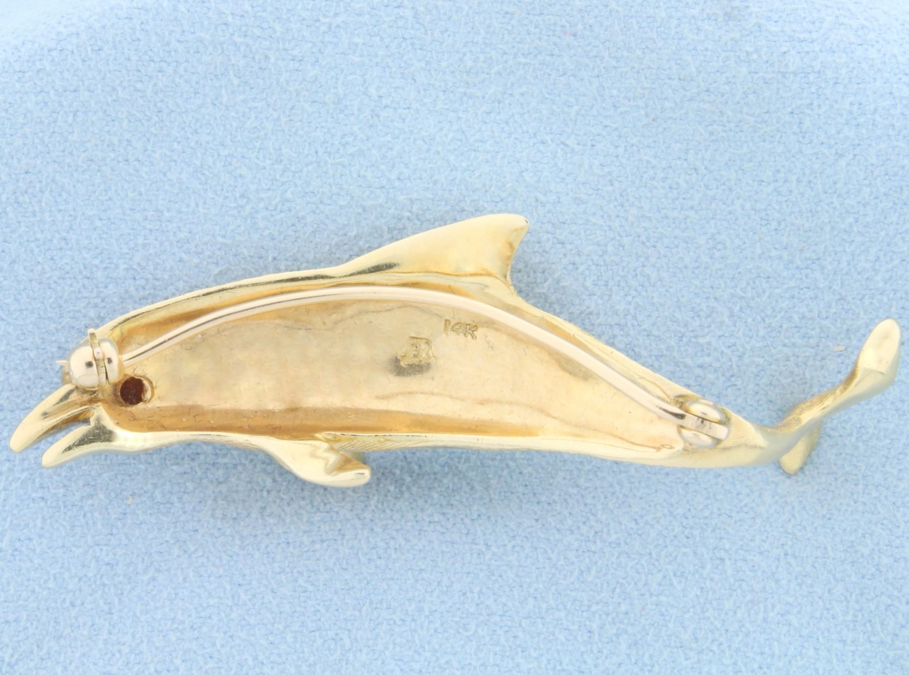 In 14k yellow gold, containing a 3mm garnet as an eye. 2 inches long. 11.5g.