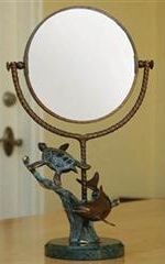 Dolphin & Sea Turtle Mirror - 15.5h - Brass & Glass On Marble Base
