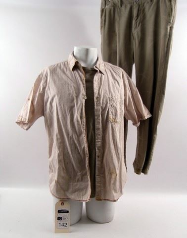 Premiere Props nor the consignor makes any warranties, expressed or implied, as to merchantability or fitness for a particular purpose, the correctness of the catalogue or other description of the physical condition, size, quality, rarity, importance, medium, provenance, exhibitions, literature, historical relevance of any property, intended use, condition of the property (including any condition report), correctness of description, origin, measurement, quality, rarity, importance, exhibition, relevance, attribution, source, provenance, date, authorship, condition, culture, genuineness, value, or period of the property. Additionally, neither Premiere Props nor the consigner makes any representation or warranty, expressed or implied, as to whether the Bidder acquires any copyrights, including but not limited to any reproduction rights of any property, or other intellectual property (including exhibition or reproduction rights) or whether the property is subject to any limitations such as ‘droit morale’ (moral rights) or other rights affecting works of art. Premiere Props does not make any representation or warranty as to title.