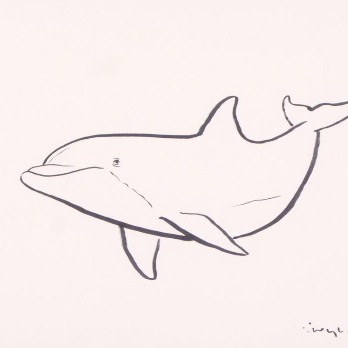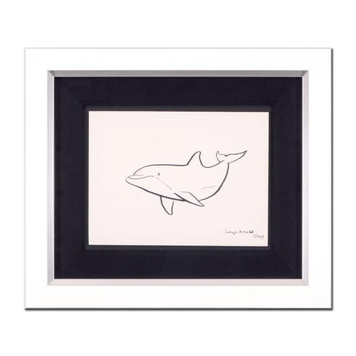 "Dolphin" is an original sketch on paper by Wyland, hand signed by the artist. This piece is elegantly custom framed, floated and matted with linen. Includes Certificate of Authenticity. Measures approx. 19" x 17" (frame); 12" x 9" (image).