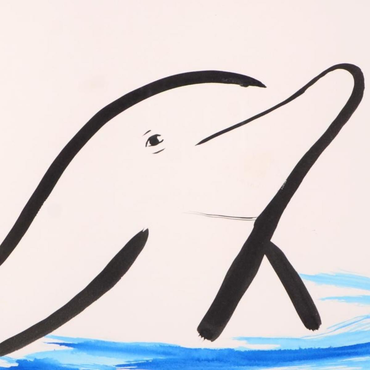 "Dolphin" is an original sumi ink and watercolor painting on deckle-edge paper by Wyland, hand signed by the artist. This piece is custom framed. Includes Certificate of Authenticity. Measures approx. 20" x 16.5" (with frame); 15" x 10" (image).