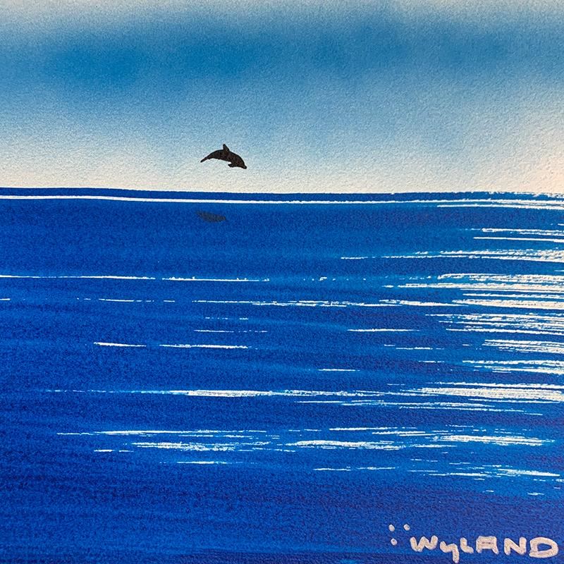 "Dolphin" is an original painting acrylic on deckle edge paper by Wyland. Hand signed by the artist, the piece comes custom framed and with a letter of authenticity. Measures approximately 26.5" x 14.5" (framed), 22.5" x 10.5" (image). This item requires special handling and may have a longer than usual turnaround