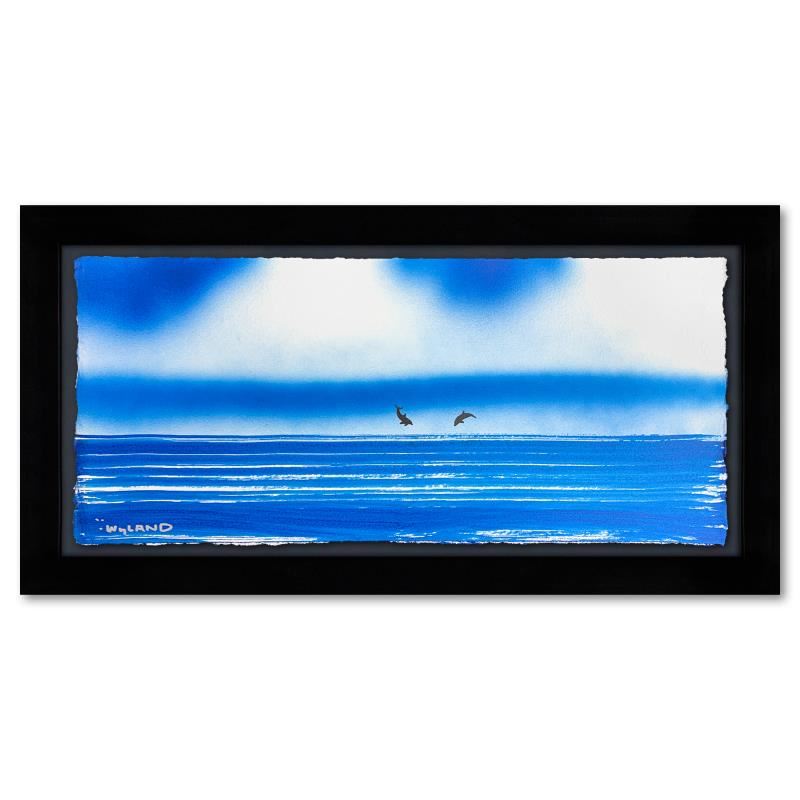 "Dolphin" is an original painting acrylic on deckle edge paper by Wyland. Hand signed by the artist, the piece comes custom framed and with a letter of authenticity. Measures approximately 14.5" x 26.5" (framed), 10.5" x 22.5" (image). This item requires