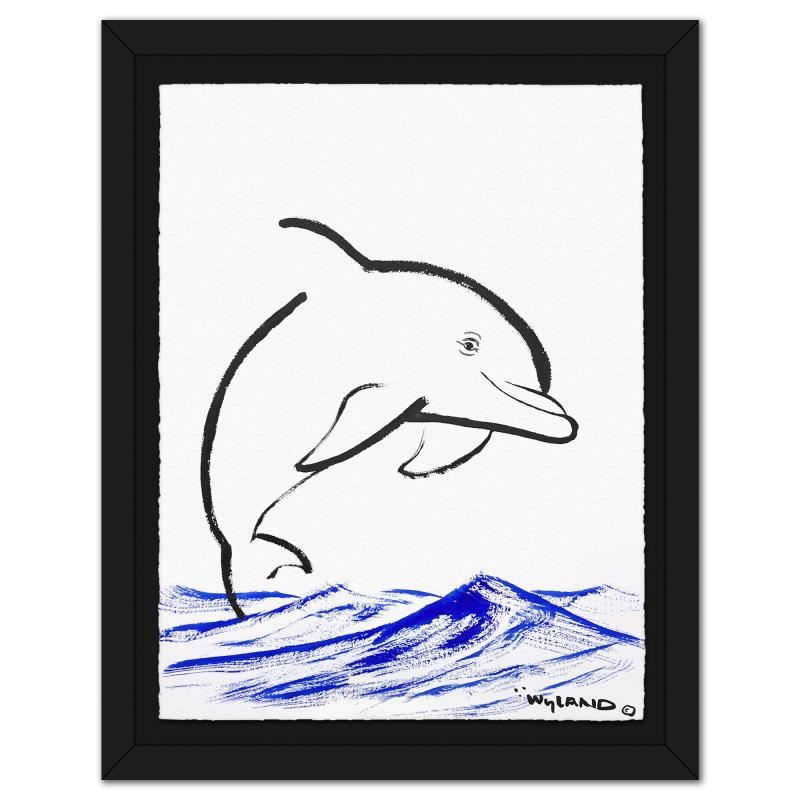 "Dolphin" is an original sumi ink painting on paper by Wyland, hand signed by the artist. This piece comes custom framed. Includes Letter of Authenticity. Measures approx. 37" x 30" (frame), 30" x 23" (image). This item requires special handling and may have a longer than usual turnaround.