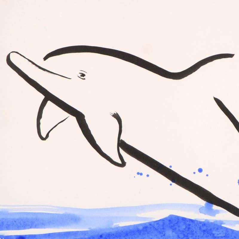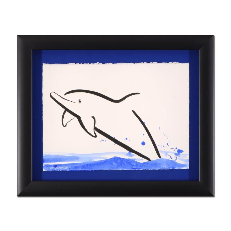 "Dolphin" is an original watercolor painting on deckle-edge paper by Wyland, hand signed by the artist. This piece is custom framed. Includes Certificate of Authenticity. Measures approx. 20" x 16.5" (with frame); 15" x 10" (image).