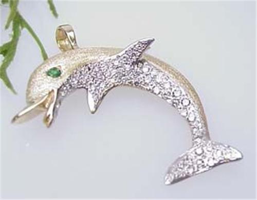 Dolphin pendant with pave diamonds .75Ctw 14kt yellow gold 7.4gr 1 1/4x 1 1/2"
