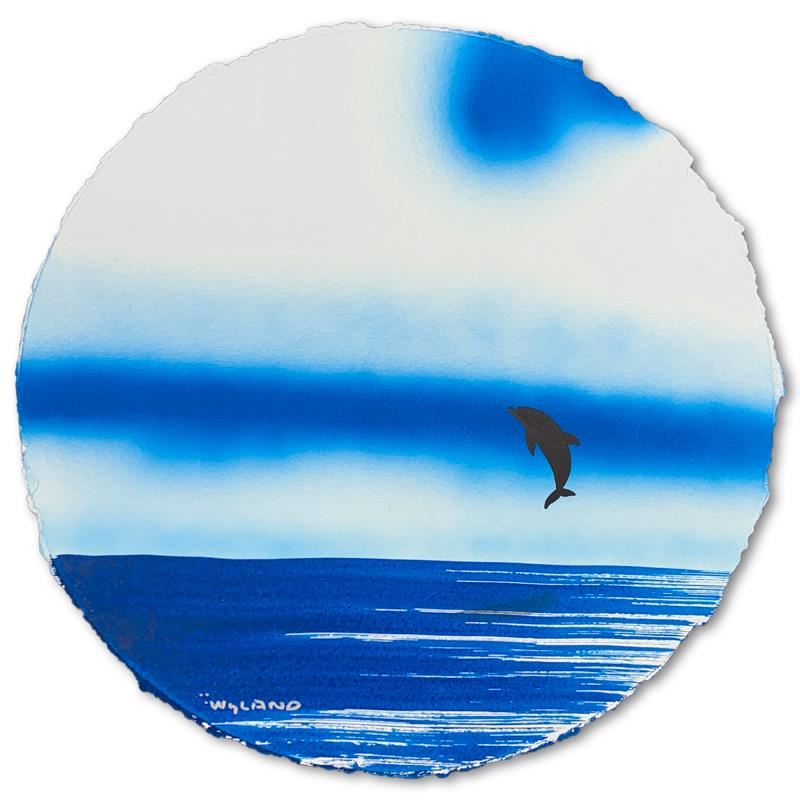 "Dolphins" is an original painting, watercolor on deckle edge paper by Wyland. Hand signed by the artist, the piece comes custom framed and with a letter of authenticity. Measures approximately 30" x 30" (framed), 19.5" x 19.5" (image).