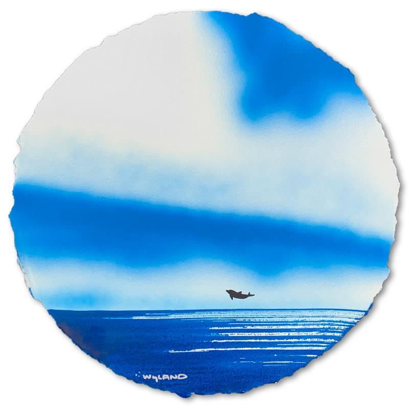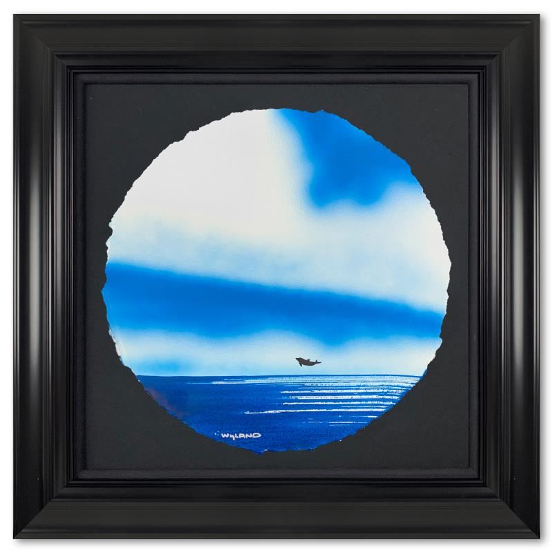"Dolphins" is an original painting, watercolor on deckle edge paper by Wyland. Hand signed by the artist, the piece comes custom framed and with a letter of authenticity. Measures approximately 30" x 30" (framed), 19.5" x 19.5" (image).