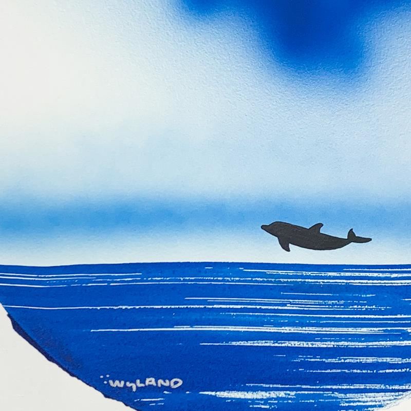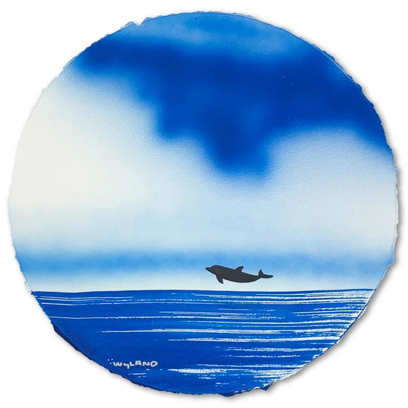 "Dolphins" is an original painting, watercolor on deckle edge paper by Wyland. Hand signed by the artist, the piece comes custom framed and with a letter of authenticity. Measures approximately 30" x 30" (framed), 19.5" x 19.5" (image).