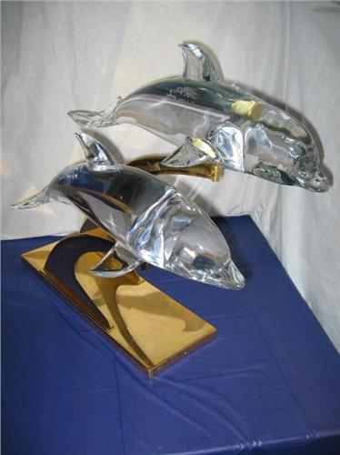 Each and every piece is made entirely by hand using only the finest quality of glass containing 9% lead. Any metal parts used with the designs, either on the bases or on the sculptures themselves, are 24 Karat gold plated."
