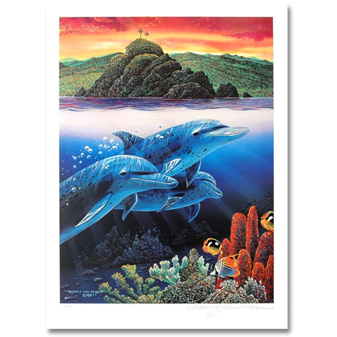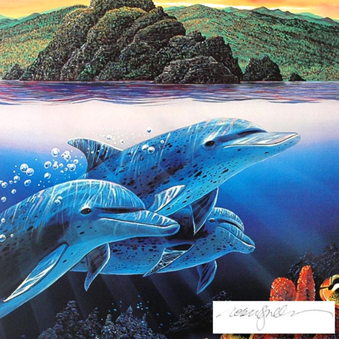 Dolphins of Alau by Robert Lynn Nelson is a Limited Edition Mixed Media print on paper with embossing. Numbered and Hand Signed with Artist Certificate of Authenticity! Measures appx. 20.5 x 27.5 (border); 18 x 24 (image).