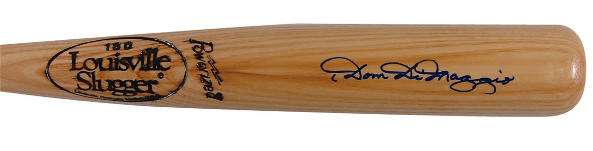 Official Louisville Slugger baseball bat signed in blue felt tip on the barrel. In fine condition, with price tag adhesive remnants to barrel.