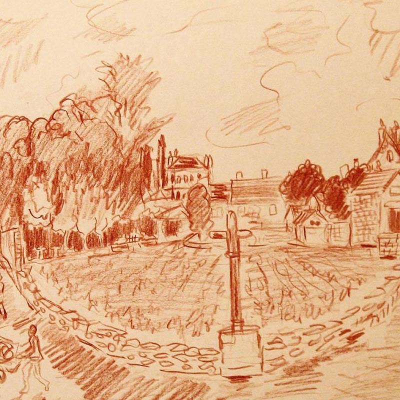 "Domaine de la Romanee-Conti, Burgundy" is an original Pastel on Paper by Wayne Ensrud. The piece is hand signed by the artist and comes with a Certificate of Authenticity. Measures approximately 15" x 18".