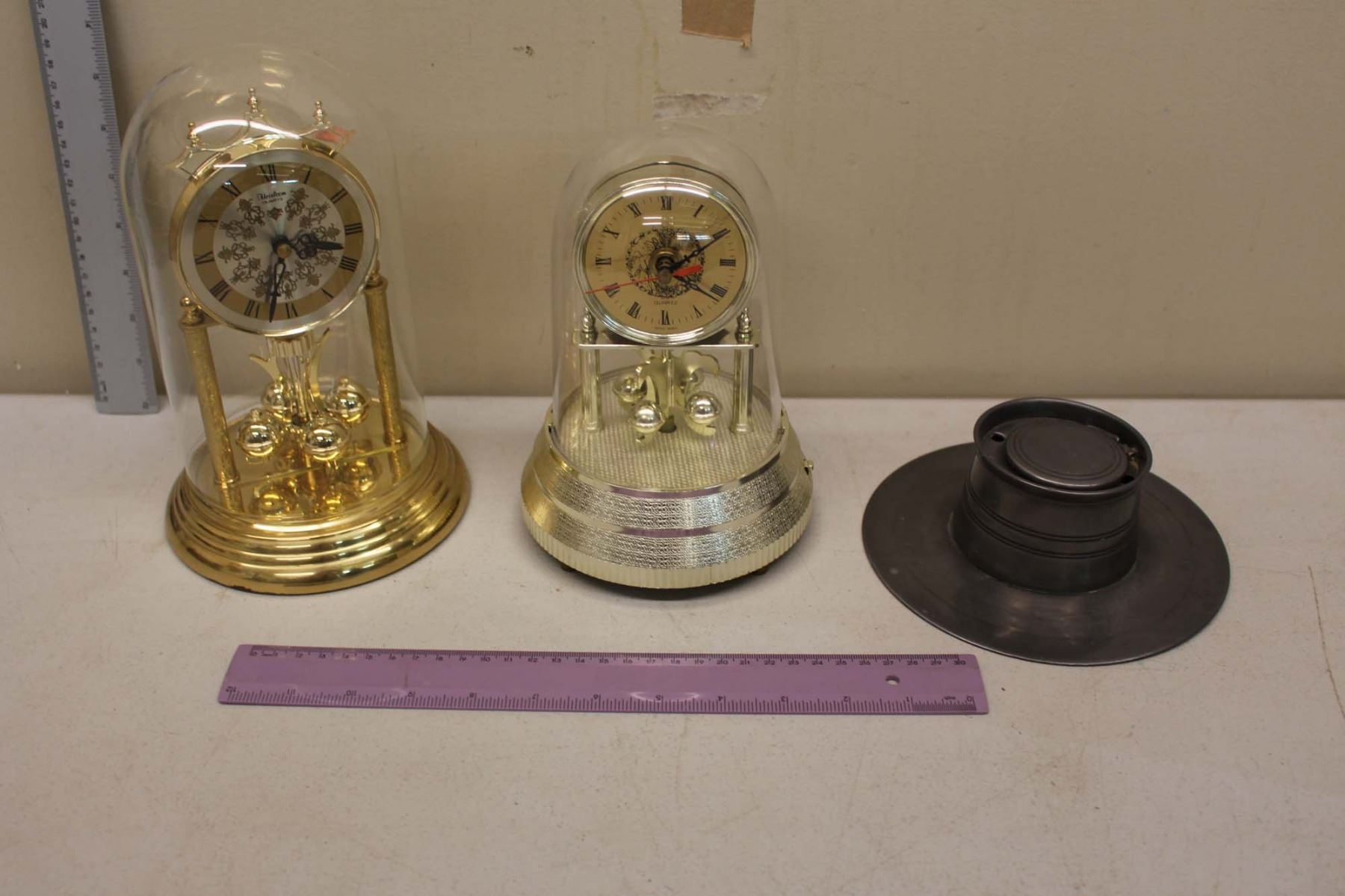 Dome Clocks (2)(1 Musical)& A Pewter Inkwell