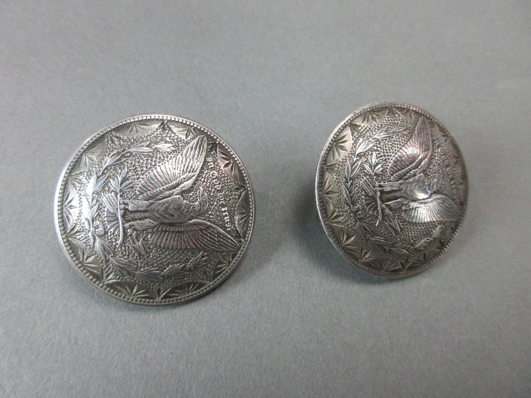 Domed And Engraved Silver Dollar Loop Back Conchos- Attributed To Bill Heisman