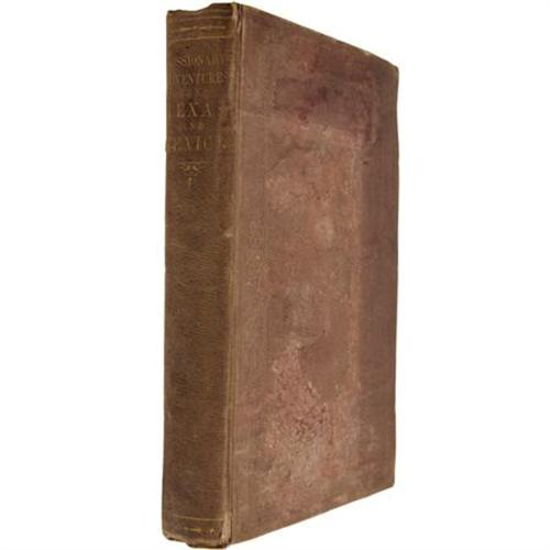 <B>E[mmanuel] Domenech: </B></I><B><I>Missionary Adventures in Texas and Mexico: A Personal Narrative of Six Years' Sojourn in Those Regions,</B></I></B></I> by the Abbe Domenech. Translated from the French. (London: Longman, Brown, Green, Longmans, and Roberts, 1858). First English edition (first published in Paris in 1857). Octavo (8.5" x 5.25"). xv [1] 366 pages. Engraved map with original pink shading and routes in red: <I>Map of Texas Illustrating the Missions and Journeys of the Abbe Em. Domenech</B></I> (17" x 14"). Original brown cloth stamped in gilt and blind. Binding is worn and water stained, slightly skewed. Map with neat tape repair on verso where joined to text block, generally, the map is in fine condition. Altogether, a very handsome copy. The excellent map, which is not listed by Wheat, follows De Cordova's conformation. Bradford 1350. Graff 1120. Howes D408. Plains & Rockies III: 356an. Raines, pages 69-70. Tate, <I>Indians of Texas</B></I> 2040: "Describes the 1840 Council House Fight as a plot by the Texans." <I>The Handbook of Texas Online</B></I> (Emmanuel Domenech): "[Domenech] may have been the first priest to be ordained in Texas.... The book describes the trials of early Catholic missionaries and is filled with vivid sketches of the Texas frontier and anecdotes about its people. He found Houston 'infested with Methodists and ants' and dismissed Austin, 'the seat of the Texian legislature,' as 'a small dirty town' with 'only one wretched hotel.' His colorfully detailed narrative of the establishment of the Catholic hierarchy in Texas, amid the tensions of the boundary disputes with Mexico and the devastation of an epidemic of cholera, has no counterpart." See Horgan's comments in <I>The Great River</B></I> (II, page 793).<BR><BR><b>Shipping:</b> Books & Catalogs (<a target="_blank" href="http://www.heritageauctions.com/common/shipping.php">view shipping information</a>)
