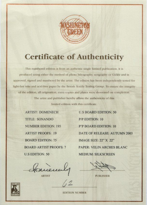 Domenech "Sonando" Silkscreen. Image Size: 22" x 22" Edition Size: 195. Signed and numbered, comes with COA and unframed. W160