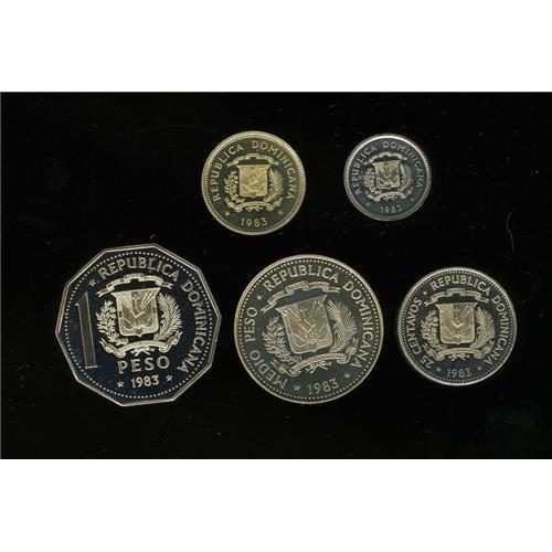 <B>Piefort Sets including:</B></I> 1983 25 Centavos, 1/2 Peso, and Peso, KM-P6, P8, and P9, all Gem Proof in the original case, with certificate; and a 5 Centavos and 10 Centavos, KM-P4 an P5, both are Gem Proof in the original case.<BR><BR><b>Shipping:</b> Coins & Currency (<a target="_blank" href="http://www.heritageauctions.com/common/shipping.php">view shipping information</a>)