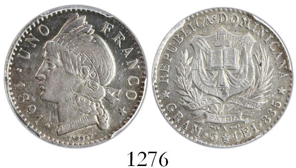 Dominican Republic, 1 franco, 1891A, encapsulated PCGS AU55.