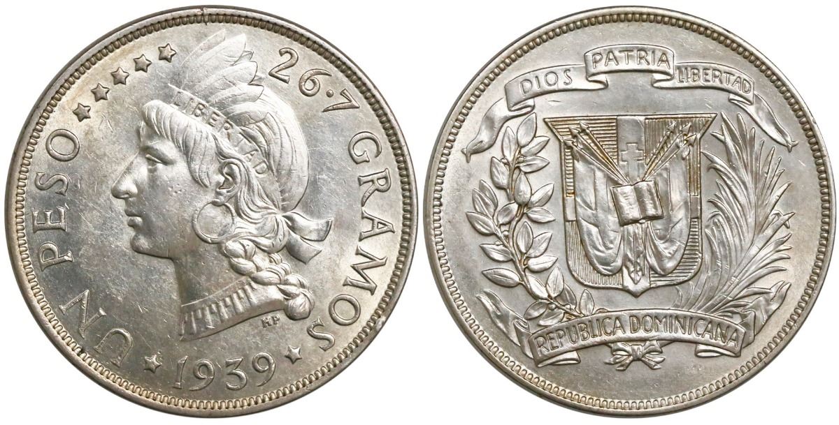 Dominican Republic (struck in Philadelphia), 1 peso, 1939.