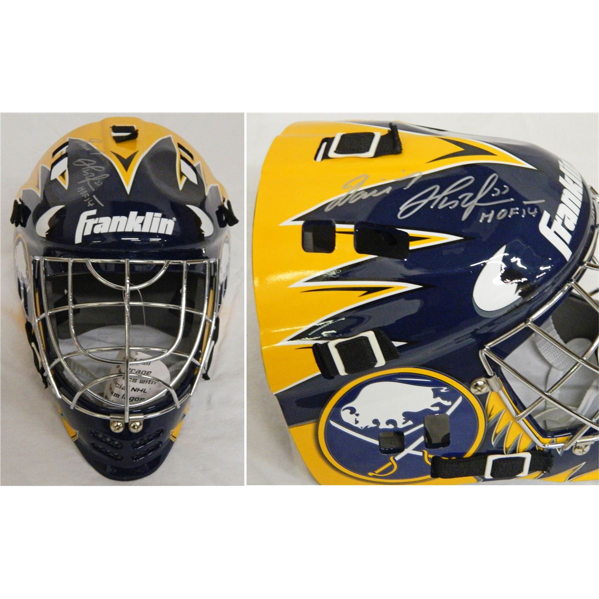 Dominik Hasek signed Buffalo Sabres Franklin replica hockey goalie mask with 'HOF 14' inscription. Item comes with a Schwartz Sports Memorabilia tamper-proof numbered hologram and Certificate of Authenticity which can be verified online.