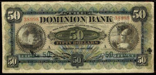 Dominion Bank 1925 $50 F to F+ No.38998 CH220-22-04. A very nice and attractive note.
