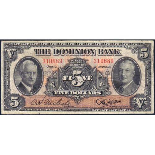 Dominion Bank $5 1938, CH 220-28-02 PMG