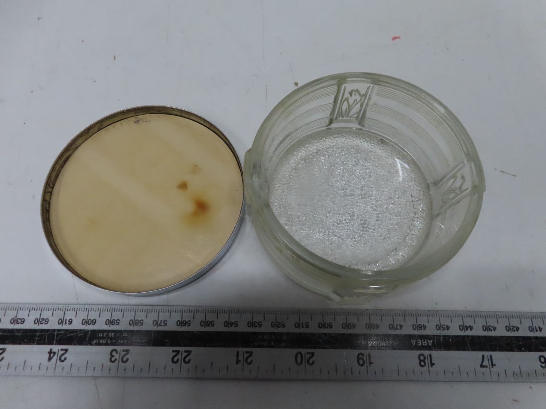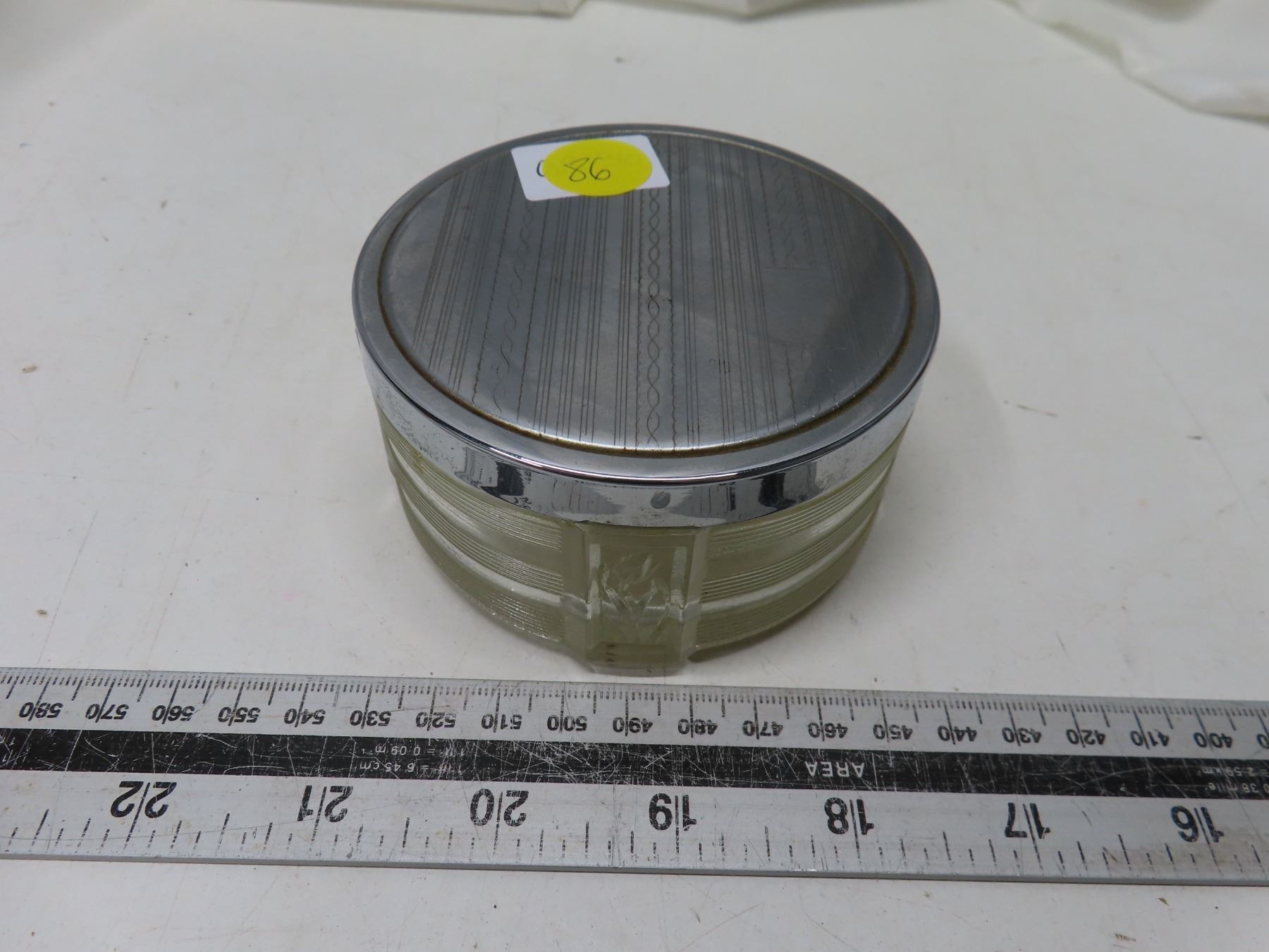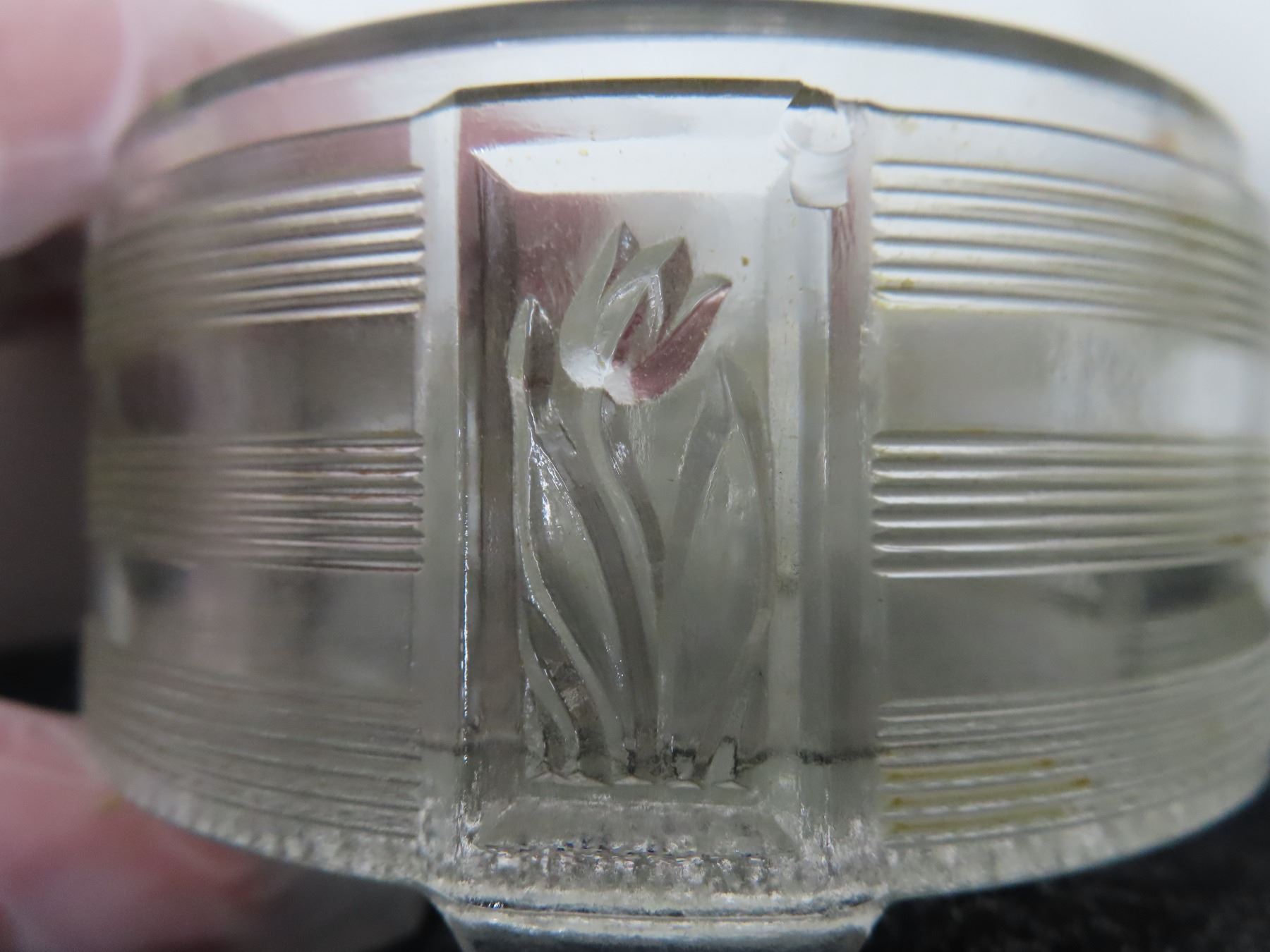 Dominion Pressed Glass " Tulip Panels" Chrome Lid Powder Jar